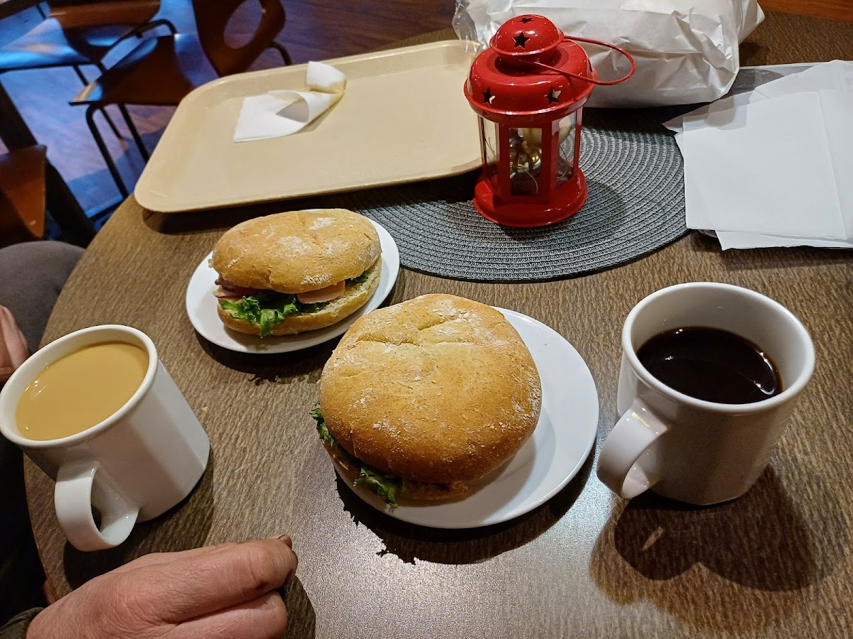 Aikaisin aamulla auki, ihana paikka nauttia rauhassa aamupala lehtiä lukien tai tv-uutisia kuunnellen. Tilaa on riittävästi, että kaikille löytyy sopiva paikka, vaikka arkiaamunakin näytti asiakkaita riittävän. Kattava valikoimama tuoretta suolaista ja makeaa, sekä kahvia ja muuta juotavaa. Otimme kahvit ja sämpylät aamupalaksi ja sämpylä oli sopivan pehmeä ja täytteitä oli riittävästi. Kahvi oli hyvää ja santsikuppi kuului hintaan. Henkilökunta oli ystävällistä ja palvelu oli todella hyvää. Suosittelen lämpimästi pistäytymään tänne torin turistikahvien sijaan!
